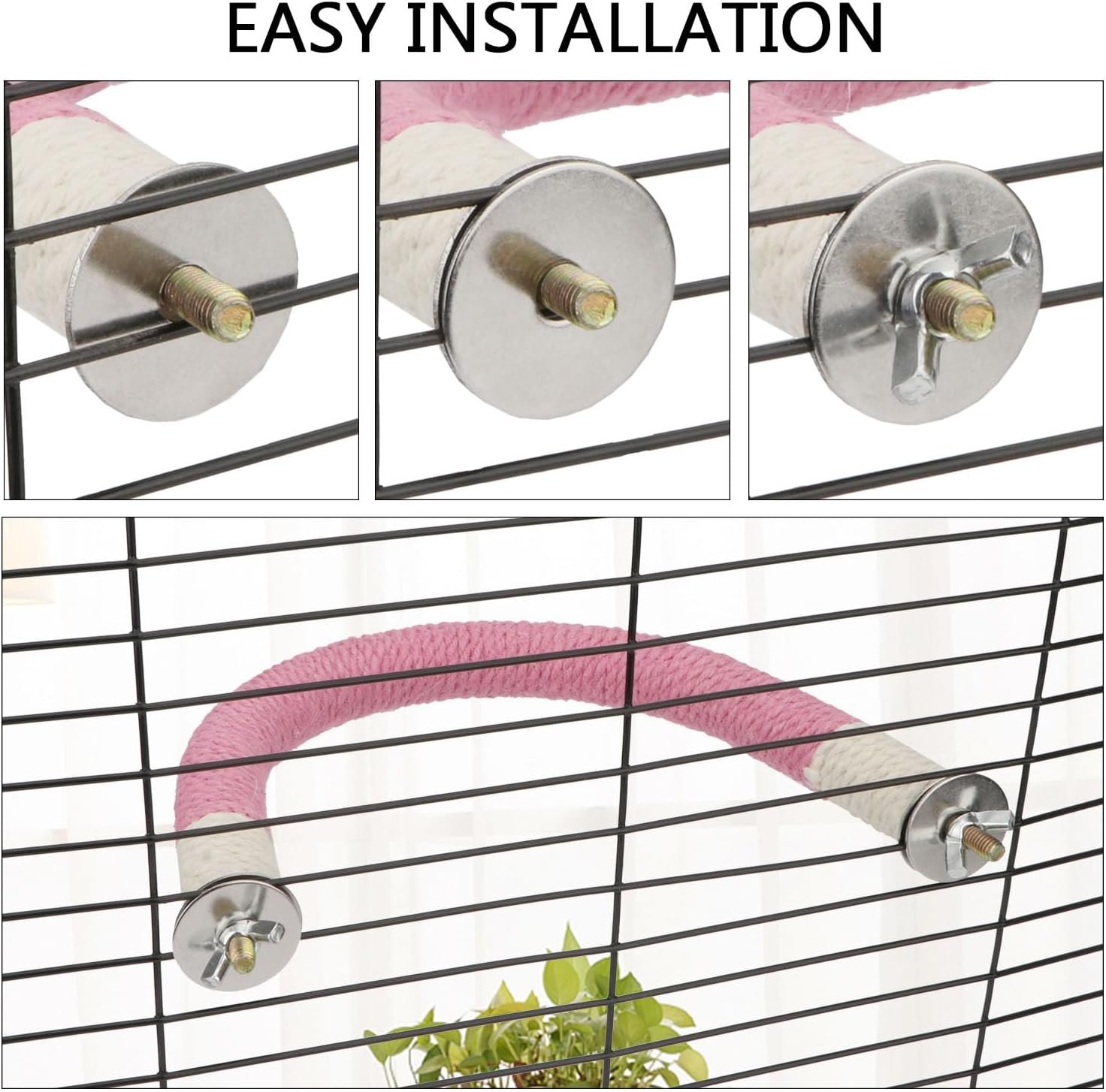 • Easy Installation: The perch comes with metal wing nuts and built-in bolts, making it easy to install securely on cages.