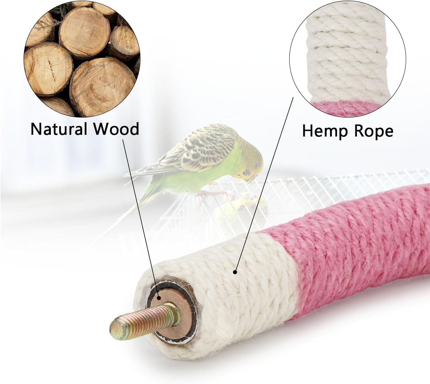 • Non-Toxic Material: Made from twine wrapped around natural wooden sticks, the perch is safe for birds, non-toxic, and odorless.