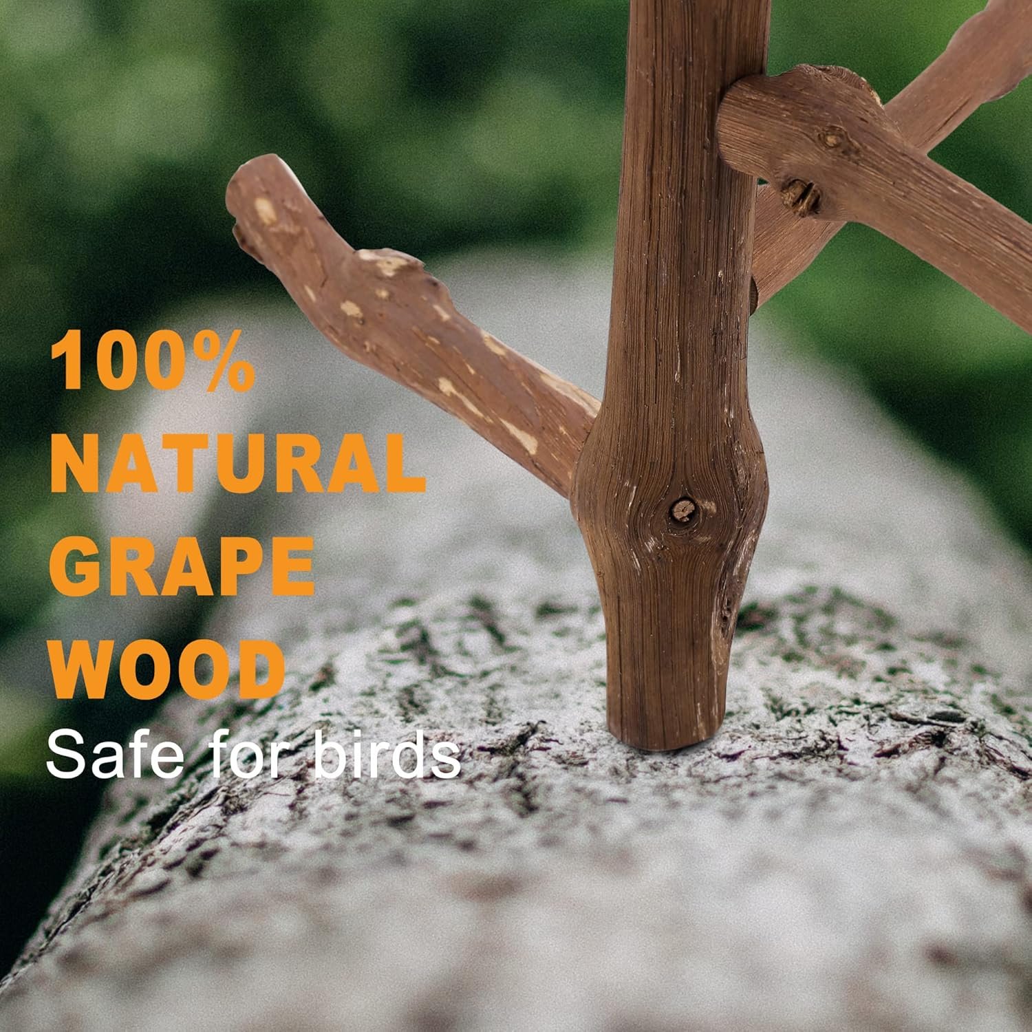 This bird perch is made of 100% natural grape vines, which is safe for your pet to chew and play. The rough surface gives your bird a comfortable controlled grip, providing excellent foot exercise and nail trimming without hurting their feet.