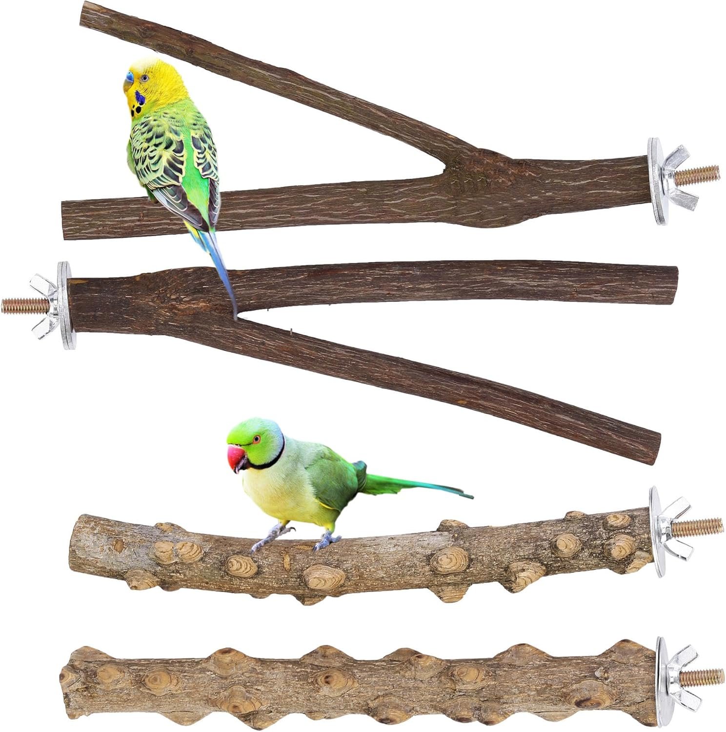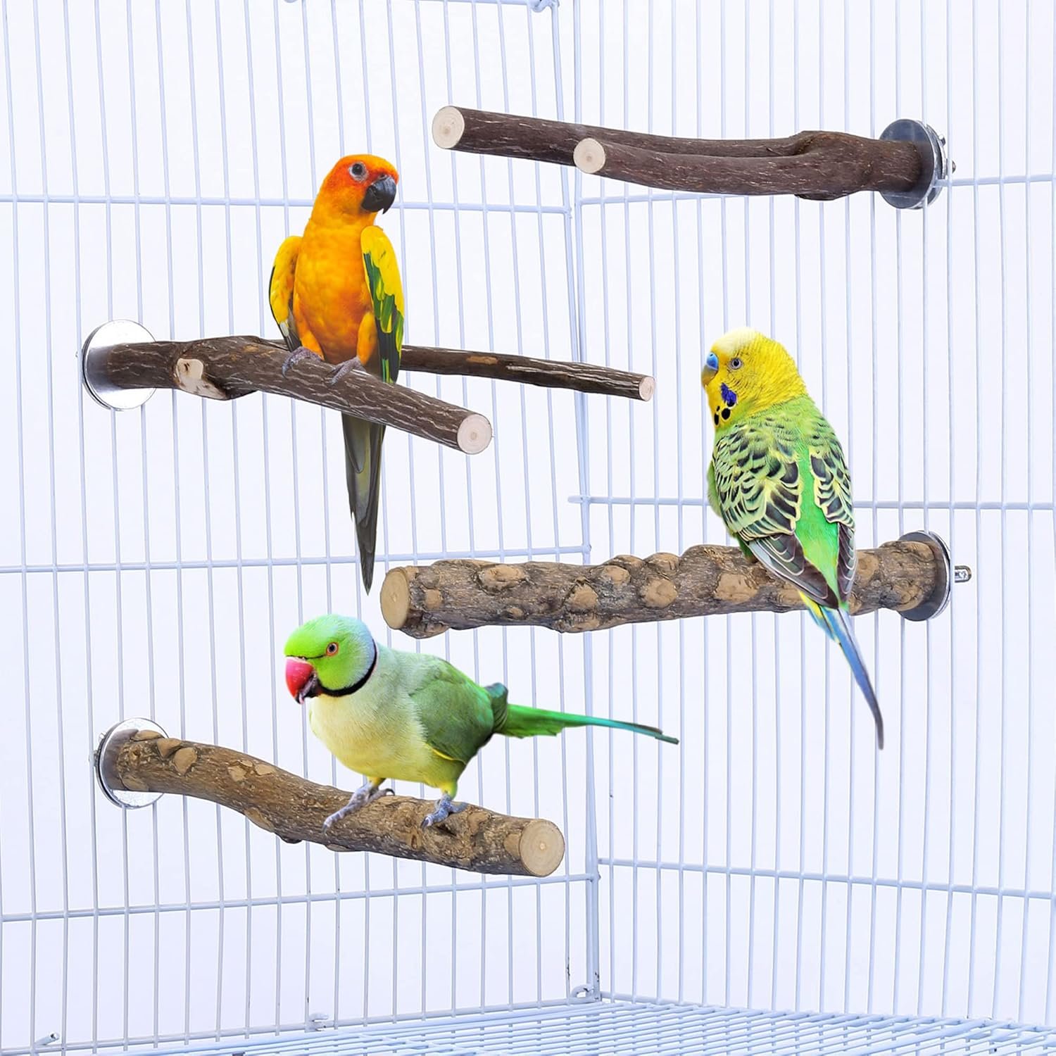 I can’t thank you enough for these perches. When I brought my bird home, he often slept at the bottom of his cage, or on his food bowl. I was worried about this behavior and I have researched so many options until I finally found these perches.These perches have played a significant role in giving my bird the comfort and good night sleep when he was new to the surroundings and still continues to do so.These perches are absolutely amazing, natural, perfect size for my green cheek. They are safe for parrots.They come with easy installation.I have noticed a remarkable improvement in my conure’s well-being and behavior. He spends hours happily perched on his new favorite spots.Thanks a lot.