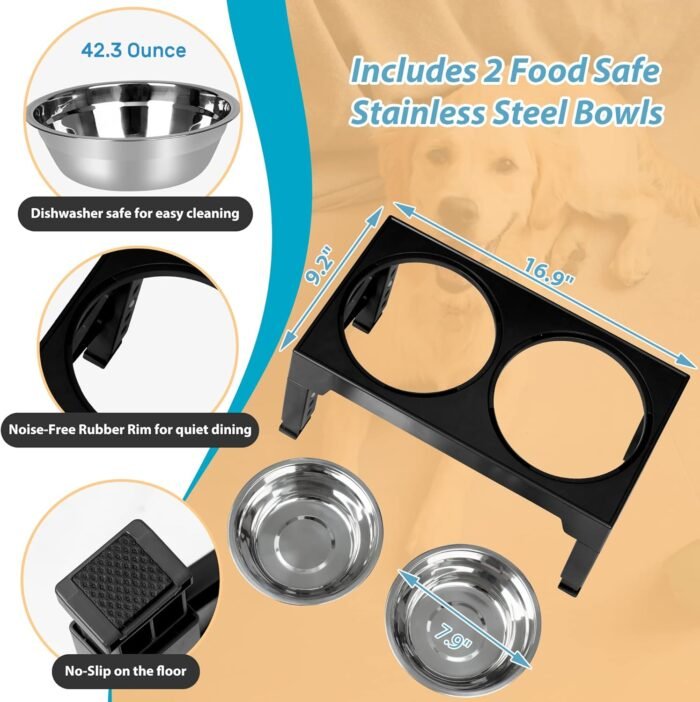 The elevated dog bowls are designed to provide your pet with a comfortable dining experience, promoting healthier digestion and reducing strain on their neck and back. With its adjustable stand, stainless steel bowls, and anti-slip features, it’s a practical and convenient solution for pet owners. However, it’s essential to consider the size and durability of the product to ensure it meets your dog’s needs.