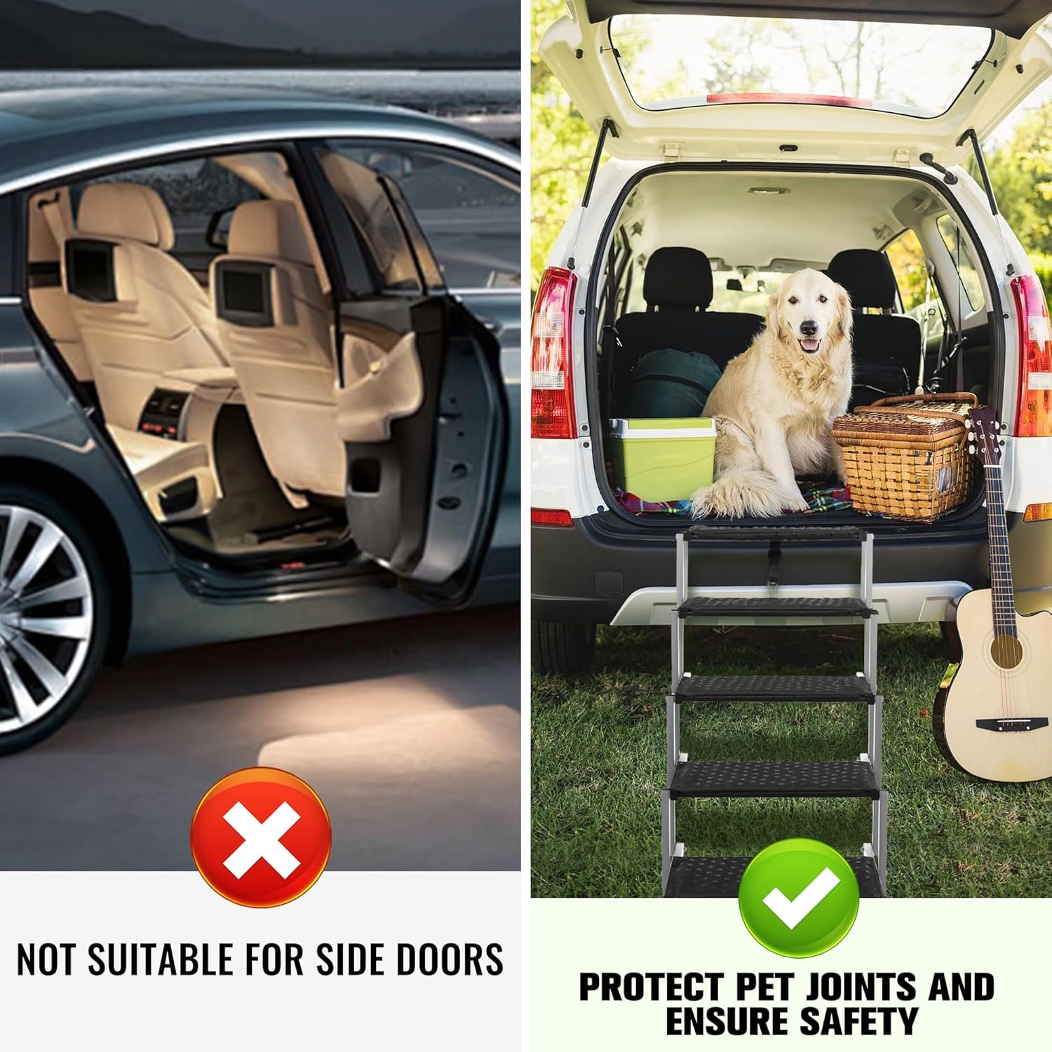 • Provides a safe and stable way for dogs to enter and exit vehicles