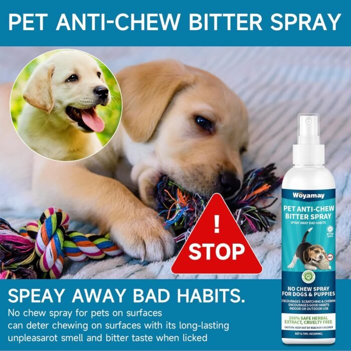 To use Woyamay No Chew Spray for Dogs, shake the bottle thoroughly before each use and spray on areas you want to prevent chewing or licking. It’s recommended to spray this anti-chew spray for dogs 3 to 4 times daily during the first month. Observe your pet’s response and adjust the frequency accordingly until there is no more chewing or licking. This product is part of Woyamay’s comprehensive pet care solutions, including hemp oil for pets, dog calming diffusers, and pet wipes, all designed to enrich your pet’s life with love, protection, and well-being.