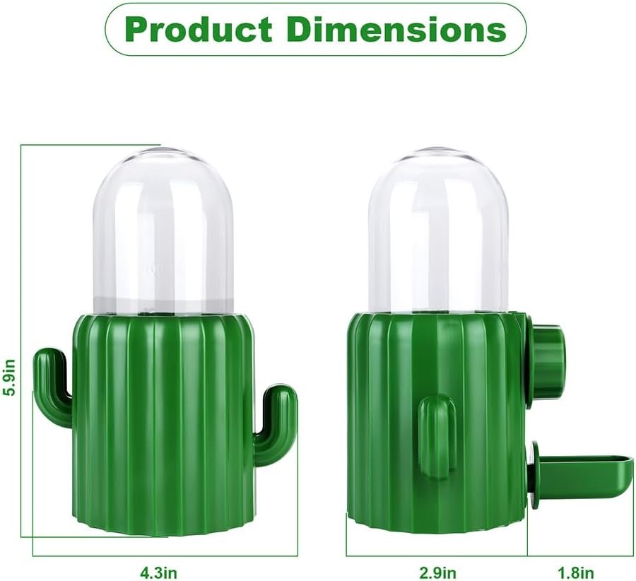 The Automatic Bird Cage Water Dispenser is made of non-toxic and durable PP plastic, ensuring safety and hygiene for pets. It does not hold bad odors or germs, keeping pets safer during use. With its controlled flow design, it reduces splashing and waste, keeping cages tidy and ideal for busy owners who prioritize their bird’s health and a clean habitat. Upgrade your bird’s hydration routine with this cactus-themed dispenser, designed to balance fun and functionality. Perfect for small birds, it ensures consistent water access while complementing cage aesthetics.