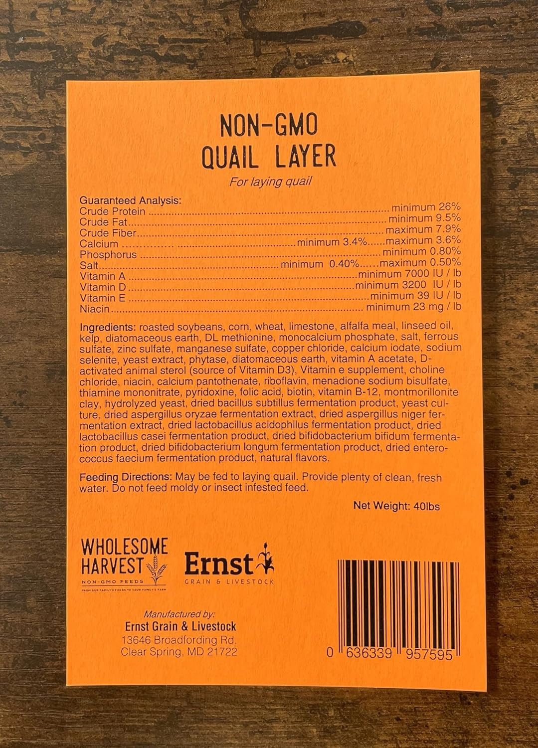 Ernst Grain & Livestock offers high-quality, Non-GMO feeds that are perfect for quail and other birds. Their commitment to sustainable farming practices and the use of natural additives ensure a healthy and nutritious diet for your birds. With its premium quality and balanced nutrition, this feed is an excellent choice for anyone looking to provide the best for their quail.