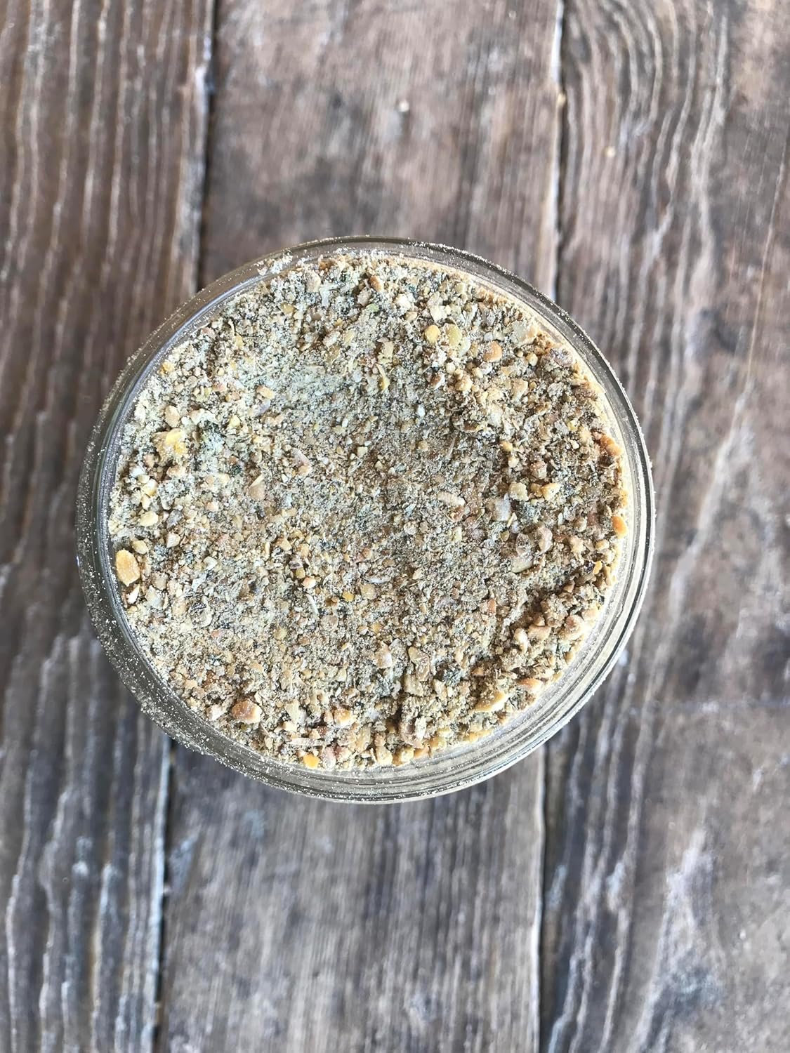 Gorgeous product. A good mix of powder fine particles and mid to larger size chuck, perfect for my button quail. Has enough protein to suit baby button quail but do your own research! Good stuff.