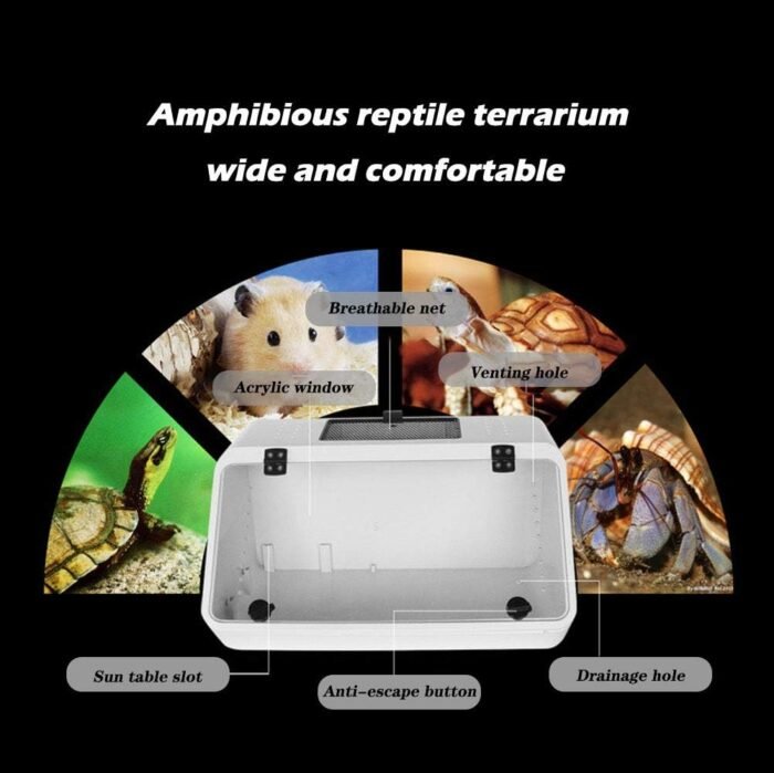 The pet terrarium is designed with a user-friendly and simple yet fashionable appearance, providing a large space for activities and a wide, comfortable living environment for pets. The package includes a terrarium and a basking platform, but does not contain lights.