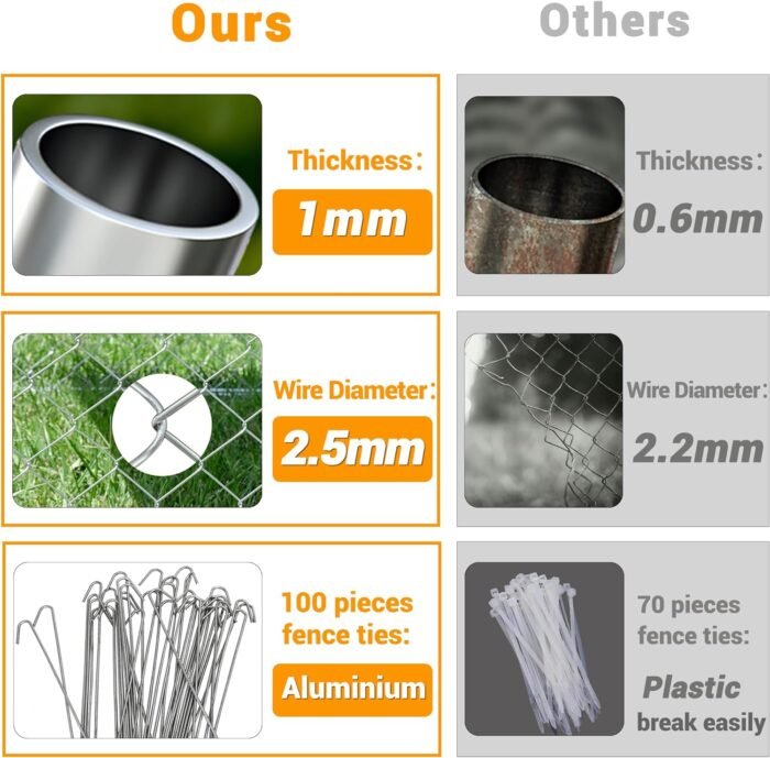 • Upgraded Structure and Stronger Material: 1.25-inch thick galvanized metal pipes and 2.5mm steel wire mesh for durability and rust-resistance.