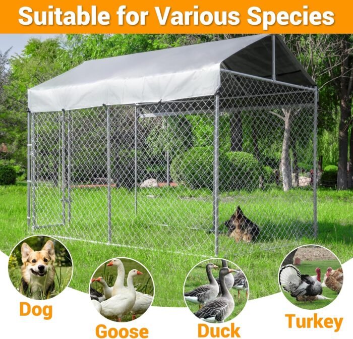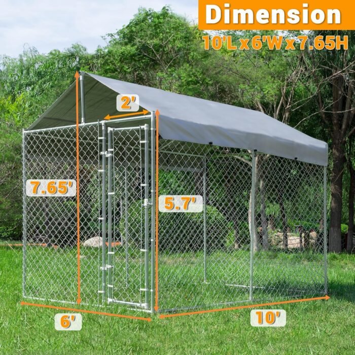 Outdoor Dog Kennel Large with Roof, Dog Run Enclosure, Large Outside Heavy Duty Dog Pens House Pet Playpen with Galvanized Chain Link Waterproof Cover (10’Lx6’Wx7.65’H)