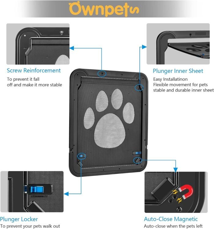 The Ownpets pet screen door is designed to provide your pets with the freedom to go in and out as they please, while keeping bugs out of the house. The durable and long-lasting construction ensures that the door will withstand regular use, and the easy installation process makes it simple to get started. With its versatile design and suitability for pets of all sizes, this pet screen door is a great solution for any pet owner.