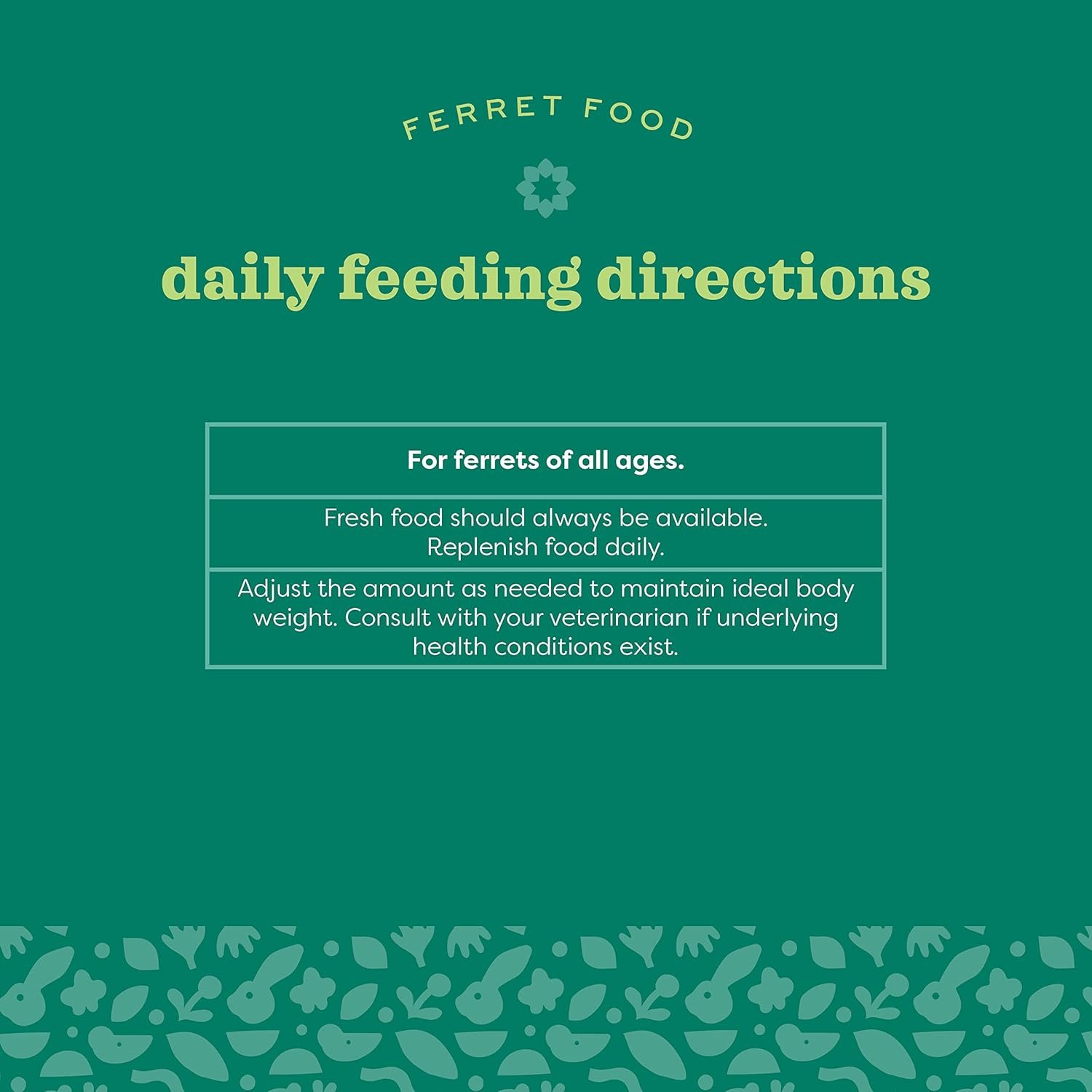 - Supports overall wellness and maintains a healthy weight, digestive regularity, and vitality in ferrets of all ages