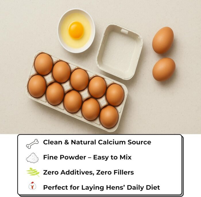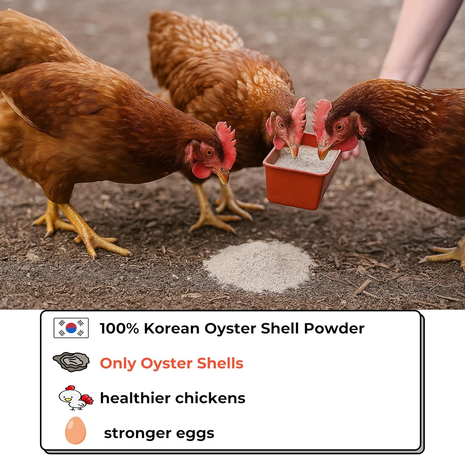 Finely Ground Oyster Shell Flour is a natural, minimally processed product made from 100% oyster shells. It is designed to provide a rich source of calcium for small animals, including chickens, birds, and reptiles. The flour-like texture mixes well with common animal feed systems, making it an ideal addition to small animal feeding routines.