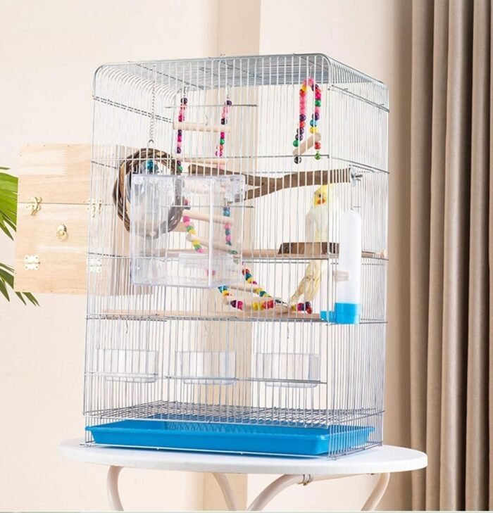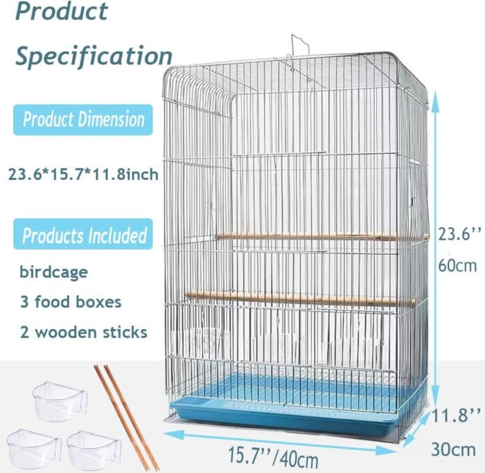 The bird cage measures 23.6”x15.7”x11.8” / 60*40*30cm, making it suitable for both home and outdoor use, as well as travel. The cage is also useful for pet stores, pet hospitals, and decoration.