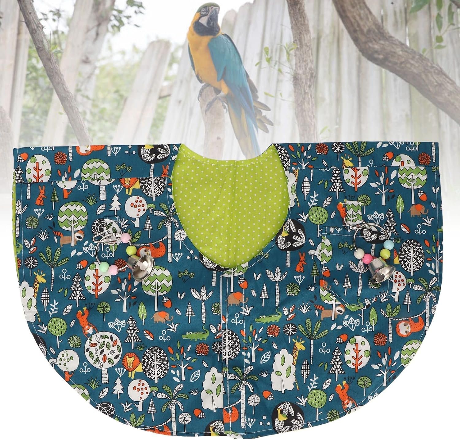 Ordered this when we got new parrots. They’re loved the toys that came with it but they weren’t able to even stand on our shoulders with it on. It is way to slippery and they just slide off immediately. The material is cute but I wouldn’t buy it knowing what I know now.