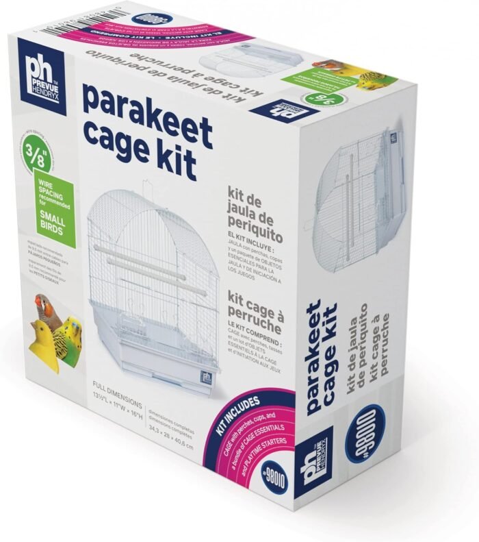The Prevue Pet Products Parakeet Cage Kit is a comprehensive package designed to keep your bird safe and entertained. This starter kit is perfect for your first bird or as a travel cage, providing great value with all the essentials and playtime starters assembled into one convenient package.
