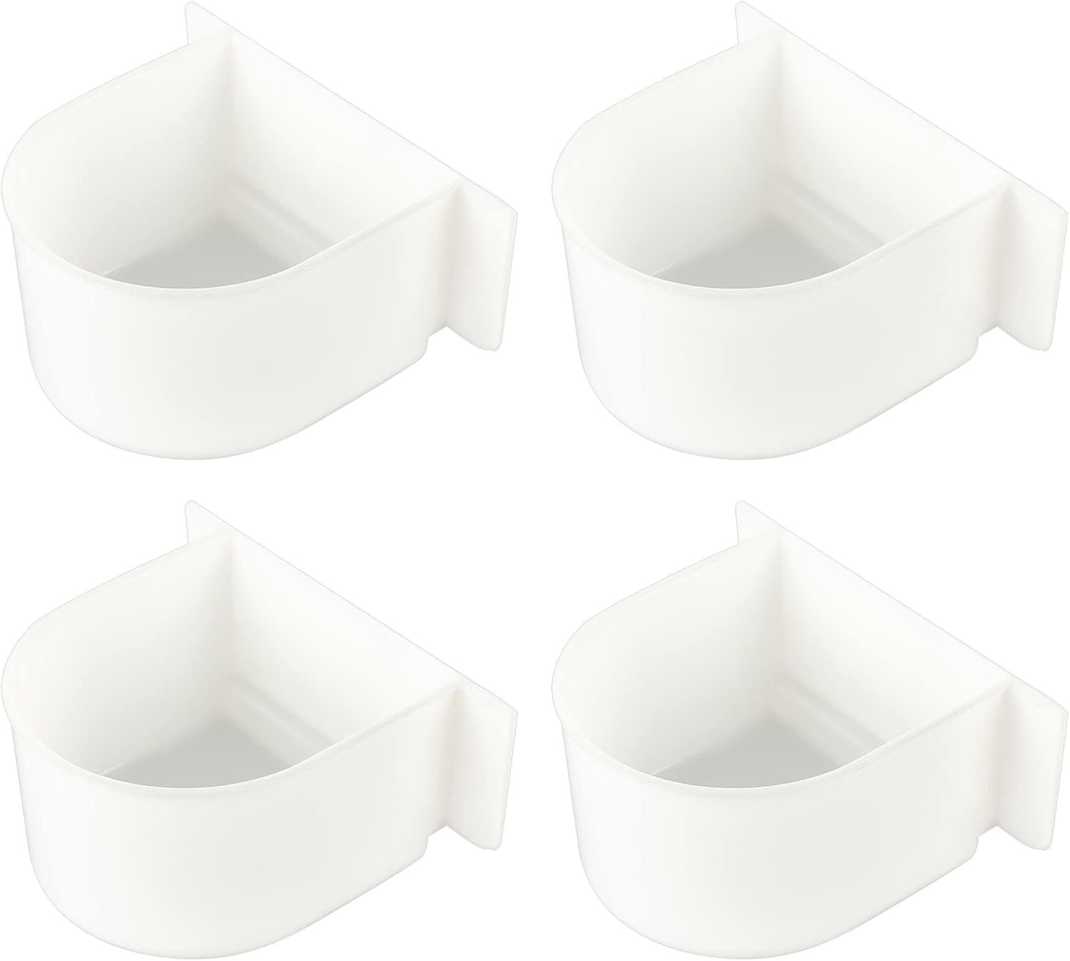 The parrot cage food and water cup is made of premium ABS plastic material, ensuring it is strong and sturdy. The cup’s dimensions are 80mm in length, 104mm in width, and 50mm in height, with an inner diameter of 75x71mm. The package includes 4 white cups that can be used interchangeably.