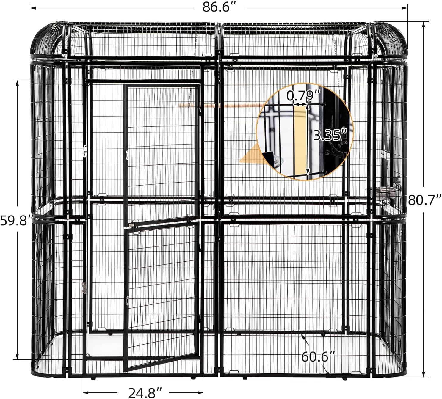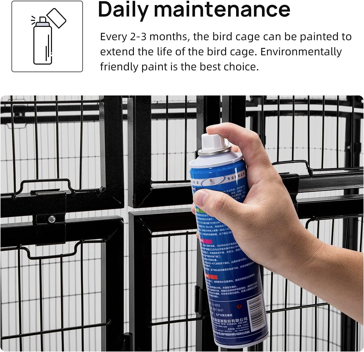The Wonline Large Walk-in Bird Cage is a spacious and durable enclosure designed to provide a comfortable home for multiple birds, including parakeets, parrots, macaws, cockatoos, canaries, finches, and more. This large birdcage is constructed with a welded stainless steel frame, ensuring excellent resistance to shock, rust, corrosion, and tarnish.