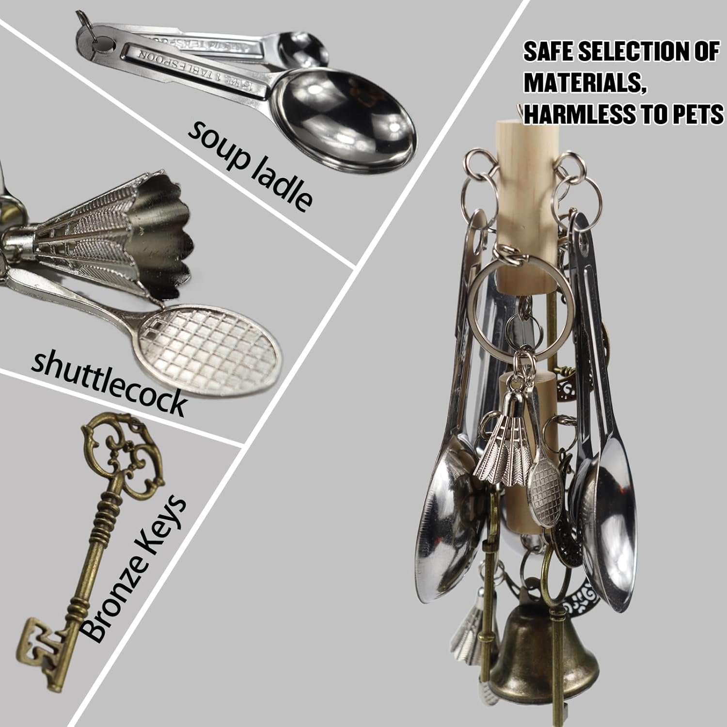 Kewkont bird toys are designed to provide a safe and environmentally friendly chewing experience for parrots. The toys include mini spoons, brass keys, bells, and other materials such as beautiful mini badminton balls. These elements encourage parrots to climb, hang, and play, promoting physical activity and exercise that help keep them smart. The interactive play design, complete with miniature spoons and other adorable pendants that make a pleasant sound when they collide, attracts the attention of avian friends to chew and play.