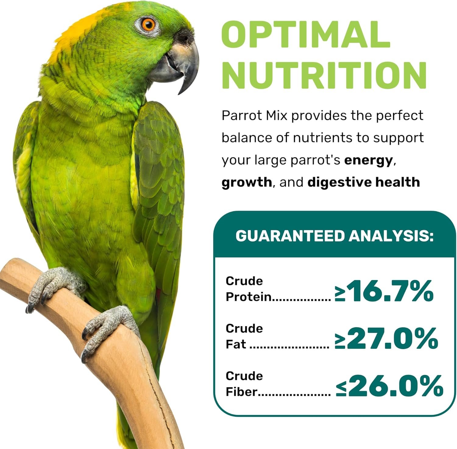 - Supports overall health and well-being of parrots