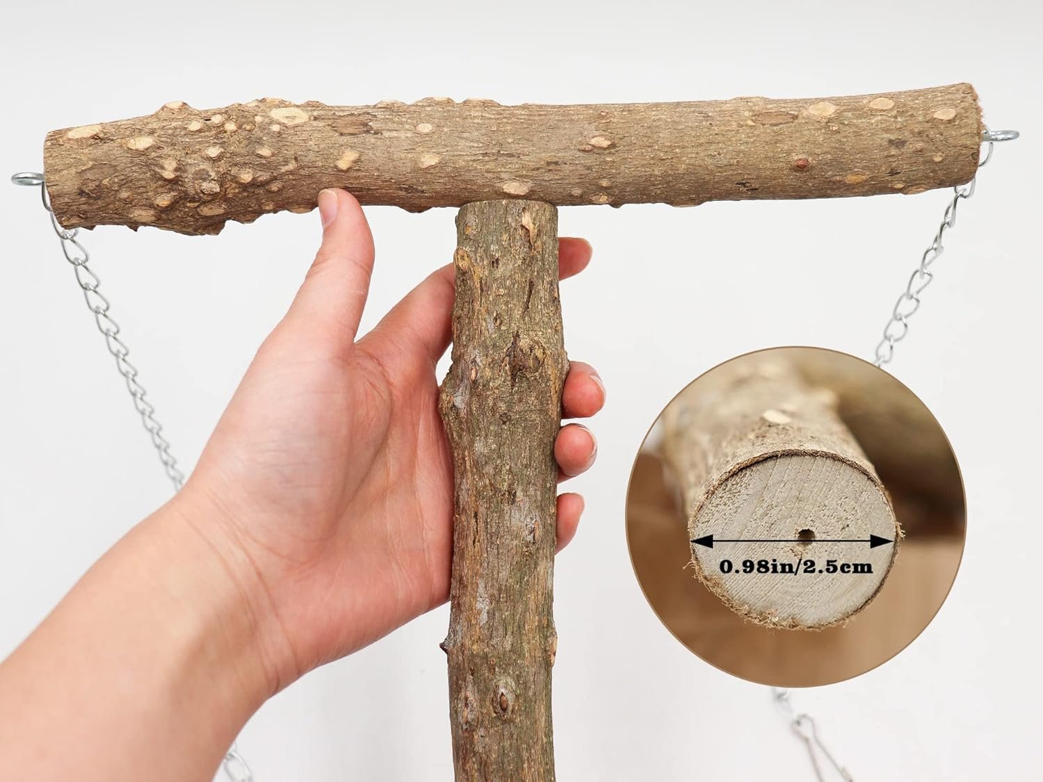 The Oversize Bird Swing Toy is a perfect stand-up, resting entertainment for birds of all sizes. Made of natural pepperwood, this toy is wear-resistant and bite-resistant, suitable for the bird’s daily biting and beaking. The assembled size is 18.189.8416.53"/46.52542 CM (LWH), and the diameter of each bird perch stand is about 0.98"/2.5 CM.