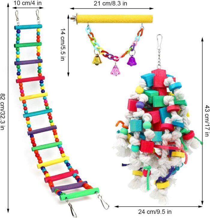 - Perfect for Large Parrots: The toys are sized appropriately for large and medium-sized parrots, providing them with ample opportunity for exercise and play.