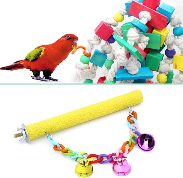 - Variety of Toys: The set includes a Color Block Toy, a Climbing Ladder, and a Scrub Stick, each designed to cater to different aspects of a parrot’s natural behavior, such as climbing, chewing, and playing.