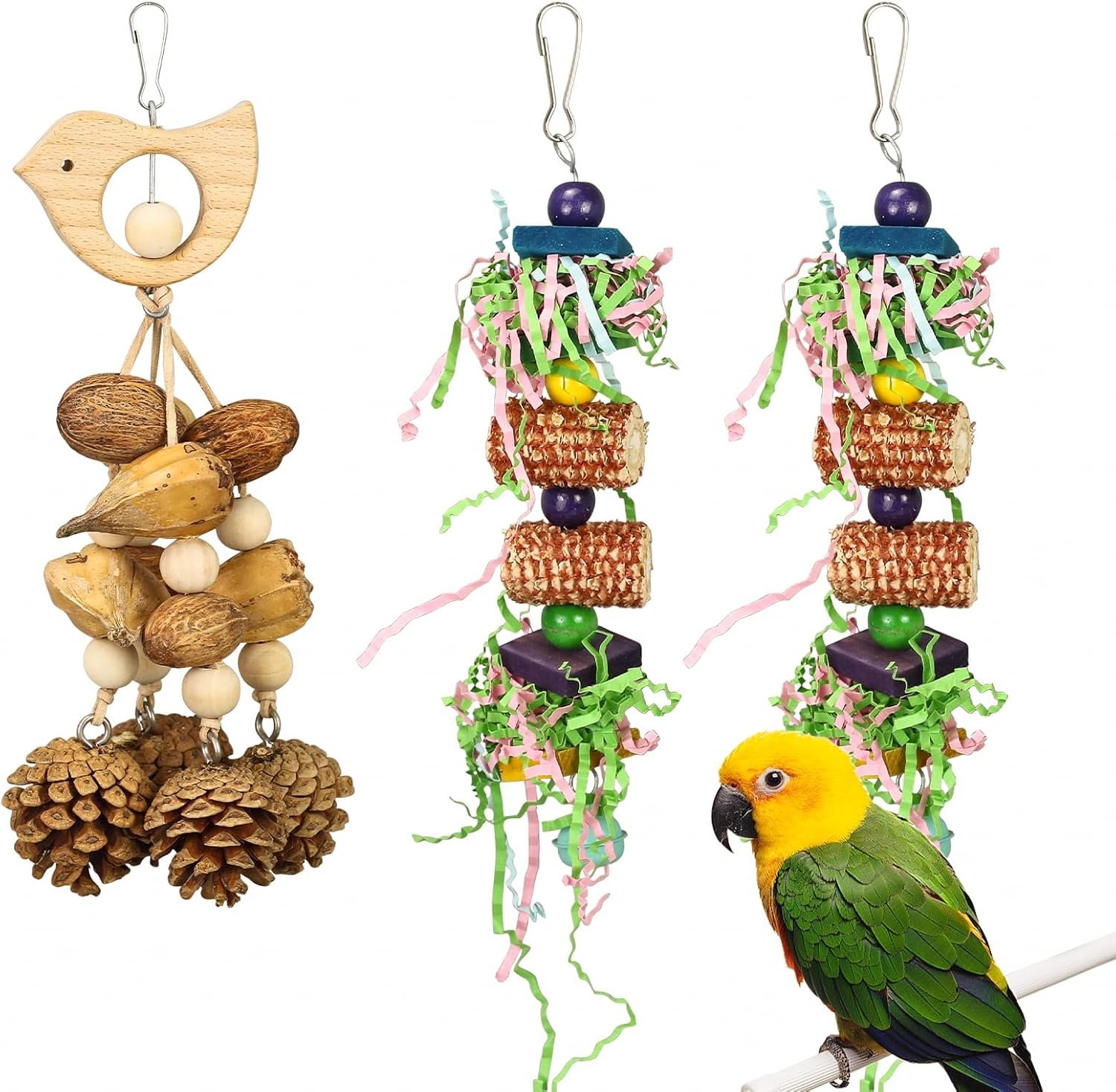 Bird toys are made of natural corn cobs, pine cones, nuts, wood blocks, with colorful paper strips, providing a safe and environmentally friendly foraging experience for your bird friends. With a wide variety of types and many ways to play, it can promote physical activity and exercise, help keep the mind active, and is an ideal choice for bird foraging toy enthusiasts.
