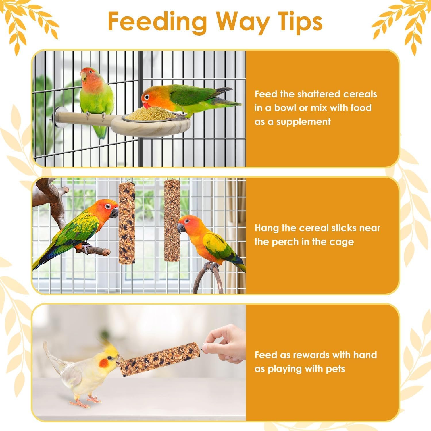 My parakeets would not eat themI think because the stick of seeds are so hard it doesn’t fall apart! I will be returning them.