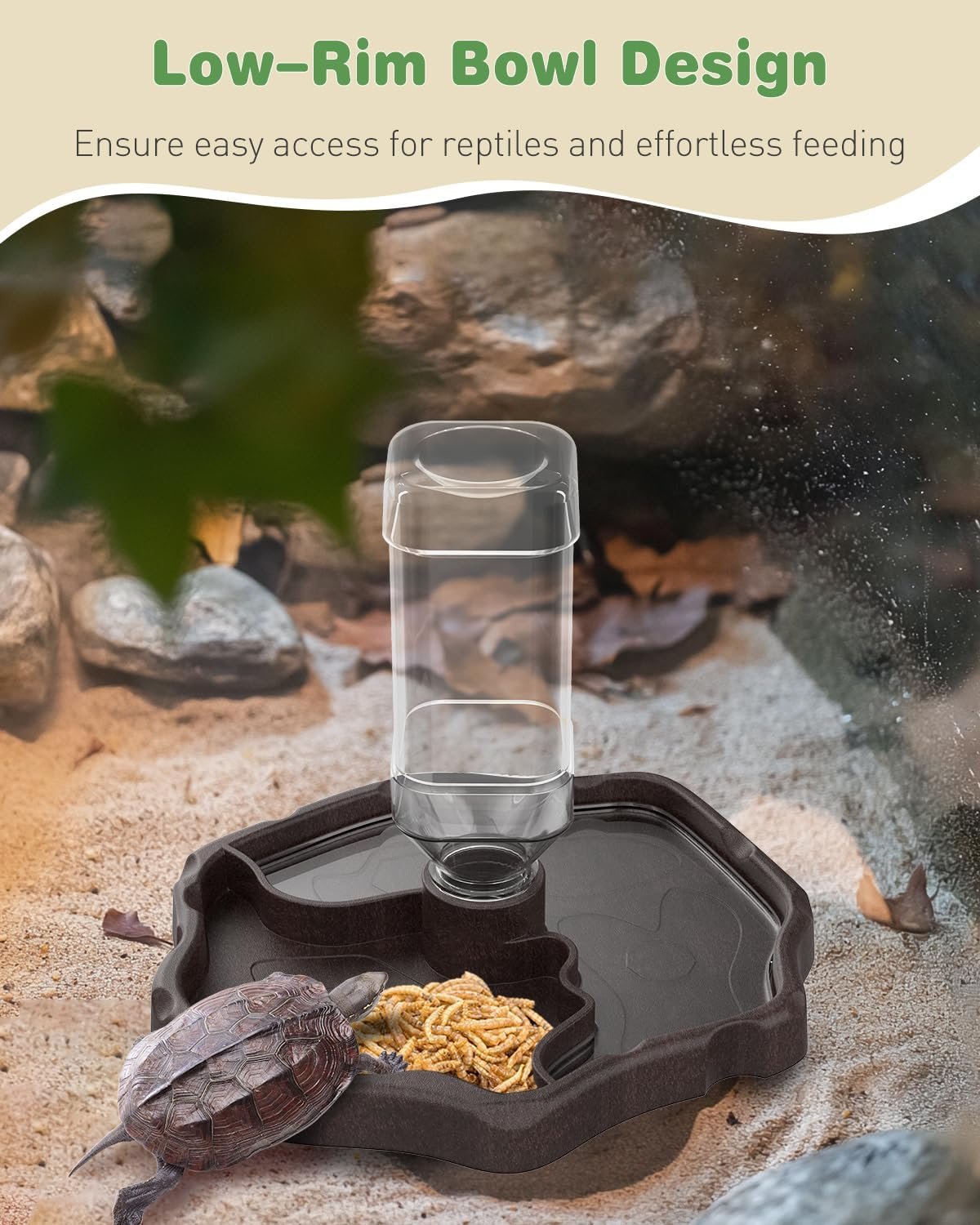 This innovative feeding solution is designed to provide a convenient and healthy way to feed and hydrate your reptilian friends. The dual-bowl layout features a built-in divider, allowing you to serve both water and food at the same time, keeping your pets fed and hydrated for 2-3 days.