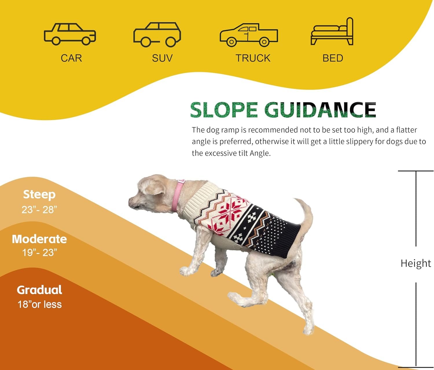 • Versatility for All Surfaces: From car rides to cozy couches, our ramp effortlessly adapts to various surfaces like SUVs, cars, trucks, trunks, seats, and beds.