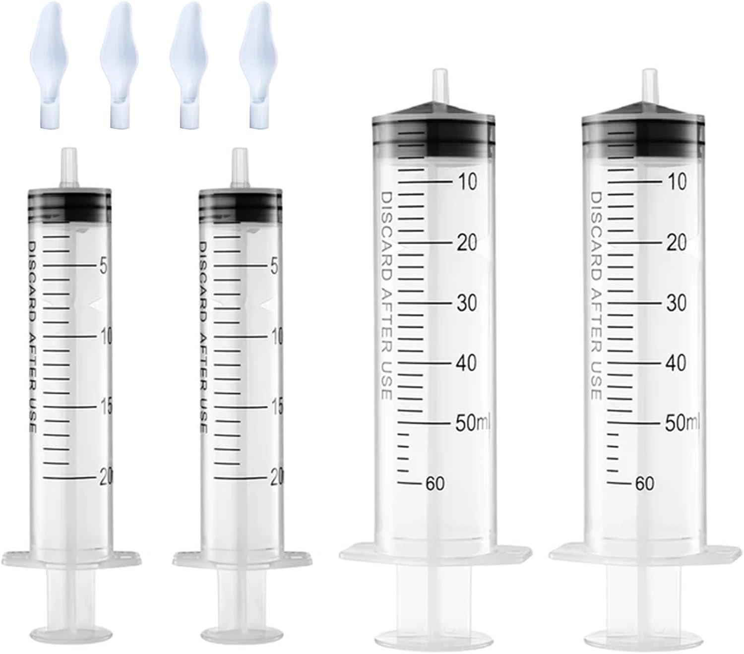 2pcs 20ml Syringes, 2pcs 60ml Syringes, 4pcs Feeding Spoons