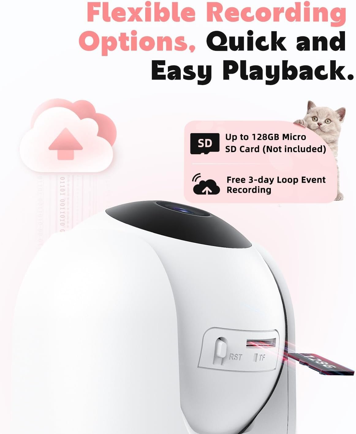 - US Cloud Storage & SD Card Storage: The camera supports micro SD cards for continuous local footage storage and offers cloud storage with a 3-day loop of event recordings for 2 years without a subscription.