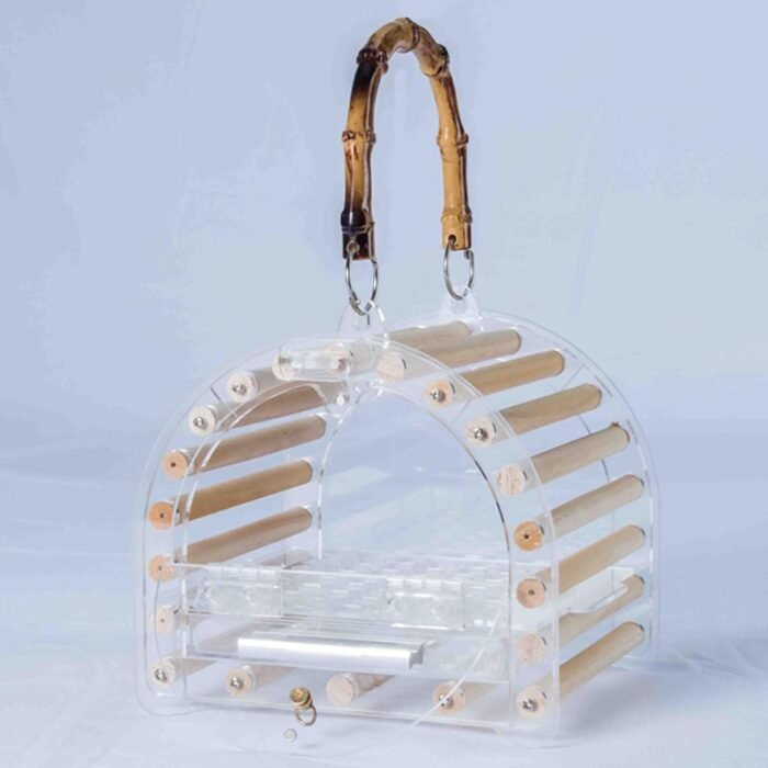 The Bird Carrier is a versatile and elegant travel cage designed for parrots, blending practicality with style to fit seamlessly into your home decor. Made from a combination of acrylic and wood, this carrier ensures a comfortable and safe environment for your parrot during travels and hikes.