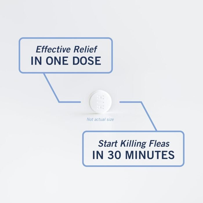 - Fast-Acting: One oral flea tablet starts killing fleas within 30 minutes of administration.