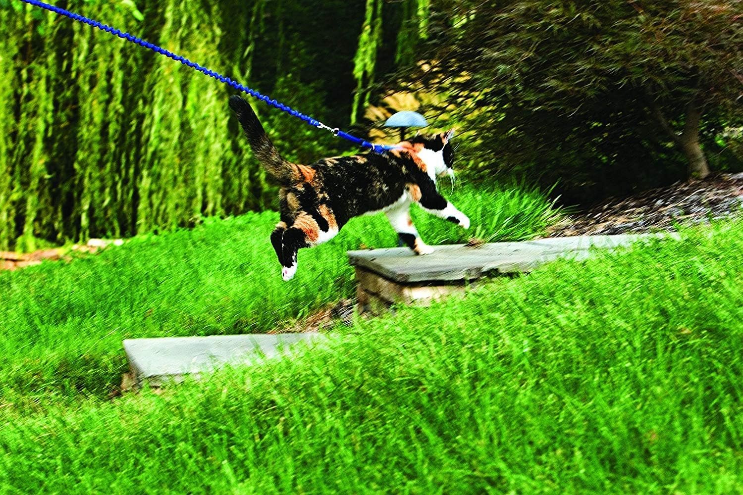 - Elastic bungee leash provides a little extra “give” to soften the effect of kitty reaching the end of the leash