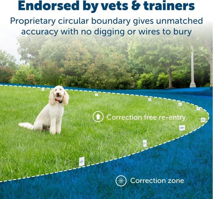- Static-free reentry, allowing your pet to return home without correction if they cross the boundary