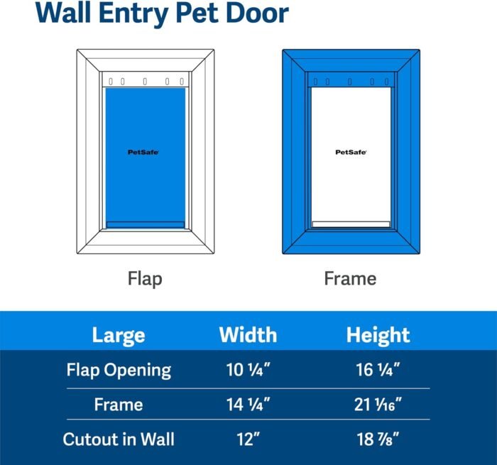 Home Dogs PetSafe Wall Entry Pet Door – Rust-Free Telescoping Frame – Easy Install for Interior & Exterior Walls 4 3/4″ – 7″ Thick – Medium – for Pets Up to 40 lbs