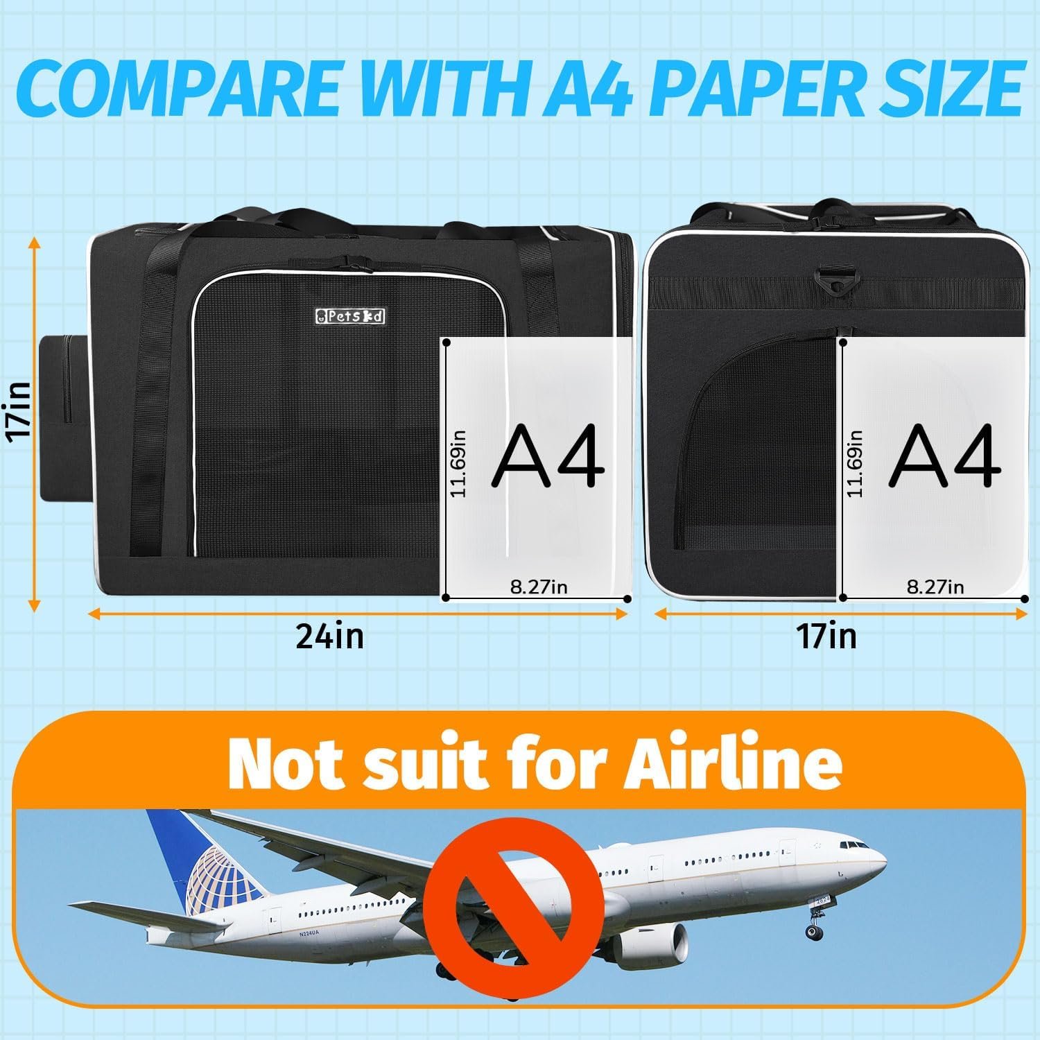 - Size and Weight: Although spacious for pets, the carrier itself is 24 x 17 x 17 inches and weighs 6.75 pounds, which might be bulky for some users.