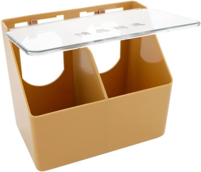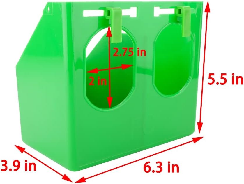 The feeder is made of high-quality plastic, which is stable and durable. It features a cover that prevents feed from leaking out, making it a great option for bird owners who want to keep their cages clean. The feeder also comes with 2 buttons on the back that can be adjusted to fit any size bird cage, allowing for a secure and customizable fit. Additionally, the feeder is designed to be hung on the outside of the cage, making it easy to add feed and clean up residual feed.