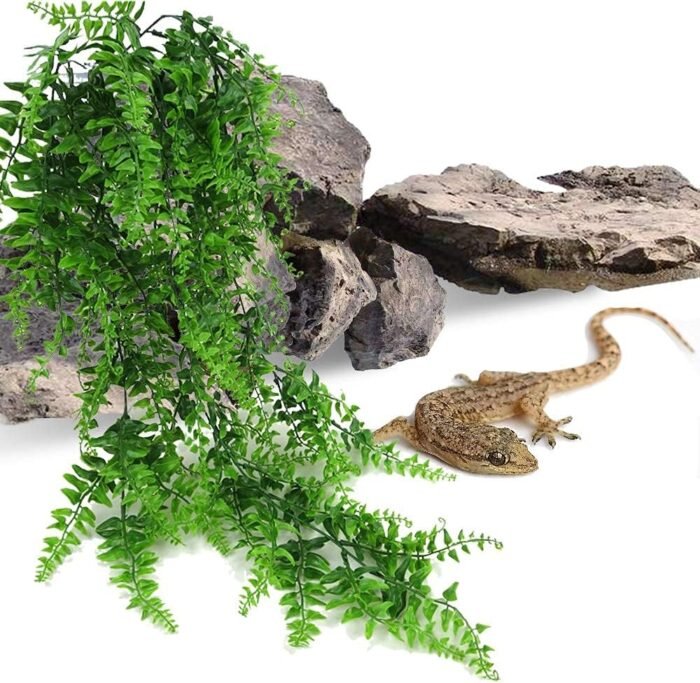 - They add a decorative element to your reptile tank without requiring any extra care. Unlike living plants, they don’t need light or water to survive, and they won’t wither or die.
