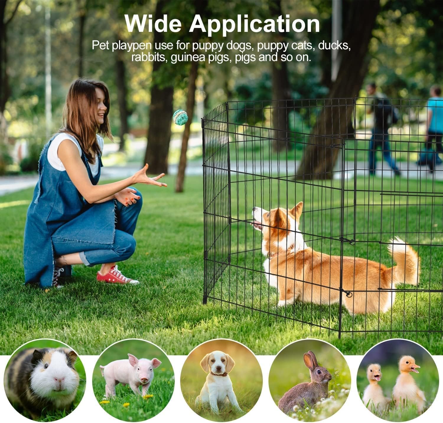 The PJYuCien dog playpen is ideal for use in both indoor and outdoor settings. The double coating on the playpen helps protect against rust and extends its life, making it perfect for use in the yard or at home. The playpen can be easily switched between indoor and outdoor use, and the provided ground stakes can be used to secure it to the grass.