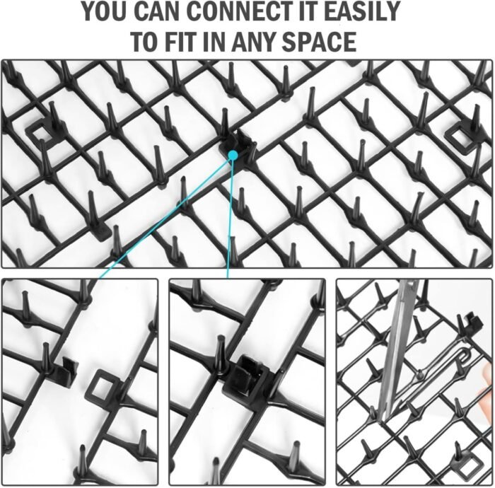 Our cat scat mat is made of high-quality, safe material that will gently scare animals without harming them. Each mat is 16″ x 12″ in size and can be placed together for large coverage. The mat comes with 10 staples and can be easily cut into strips to fit any space.