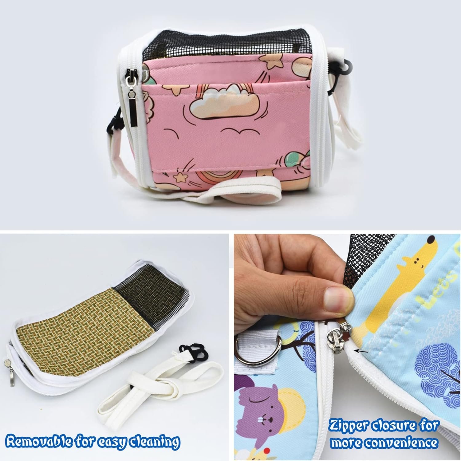 • Transparent and breathable PVC window for observing pet’s activities