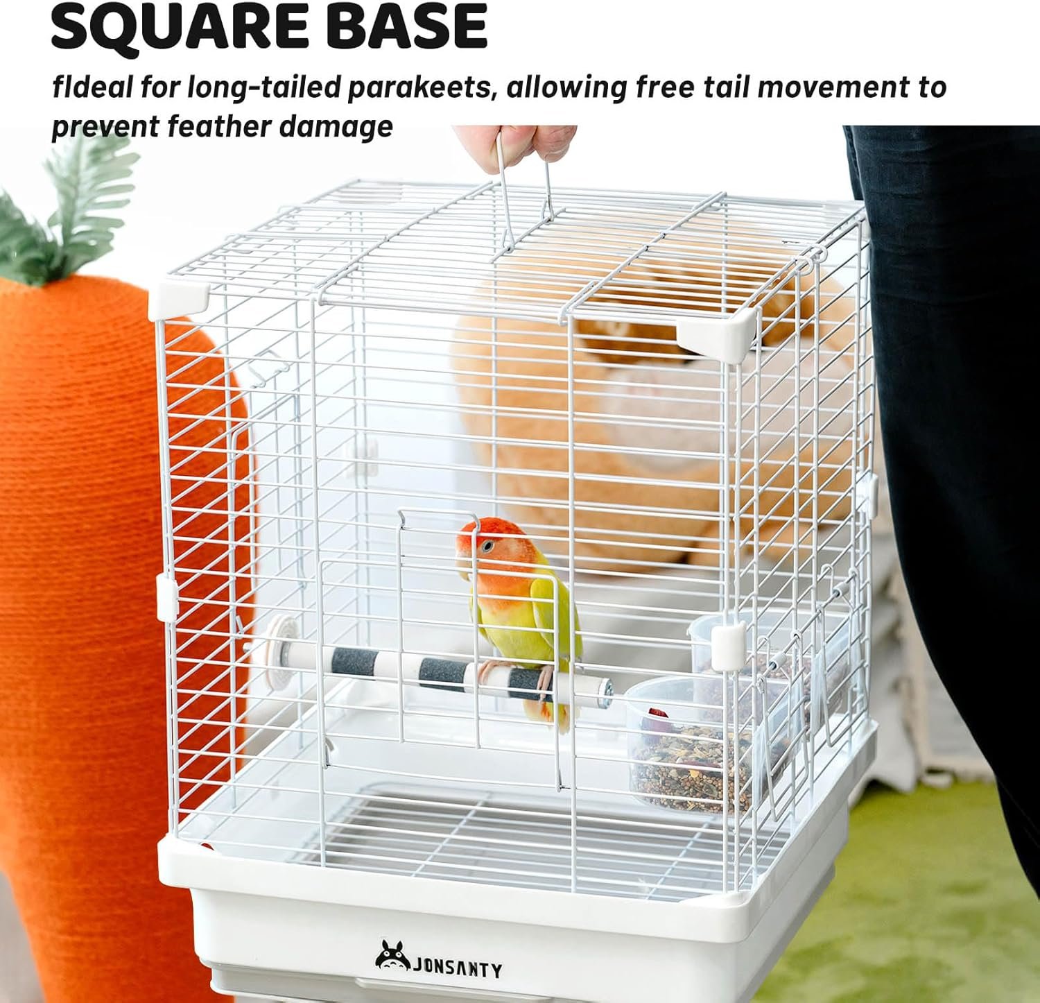 - A square base design that provides ample room for tail movement, especially beneficial for long-tailed parakeets