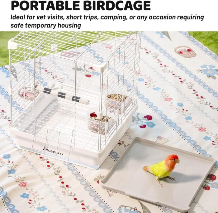 The 14.6" Portable Travel Bird Cage is a versatile and convenient solution for bird owners who need a safe and temporary housing option for their pets. This cage is designed for parakeets, cockatiels, budgies, and small to medium-sized birds, making it an ideal choice for vet visits, short trips, camping, or any occasion when a portable bird cage is required.