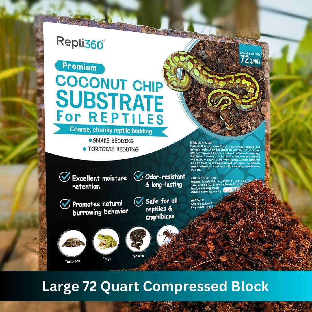 Create the perfect reptile habitat with Repti360 Coconut Chip Substrate, the ultimate bedding solution for reptile enthusiasts and professional breeders. Our premium coconut husk chips provide the ideal foundation for creating a natural, comfortable, and healthy environment for your scaly friends.