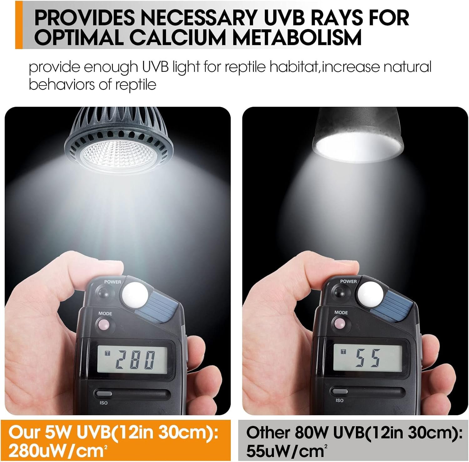 Premium High-Intensity UVB Reptile Light for Optimal Calcium Metabolism,5-Watt 10.0 Desert UVB Light Ideal for Desert-Dwelling Reptiles Bearded Dragons Tortoises