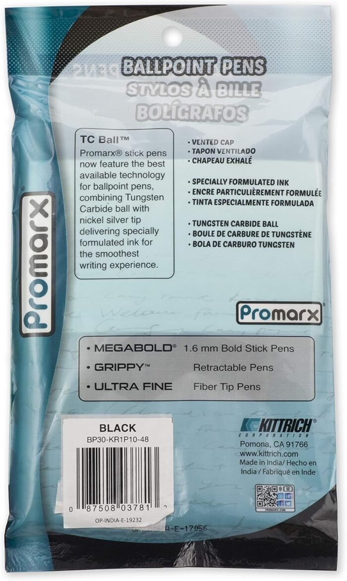 Make your mark with Promarx TC ball stick pens, available in a pack of 10 black ink pens. With their high-quality construction and smooth writing experience, these pens are perfect for everyday use. Whether you’re writing at home, at work, or on the go, Promarx has got you covered.