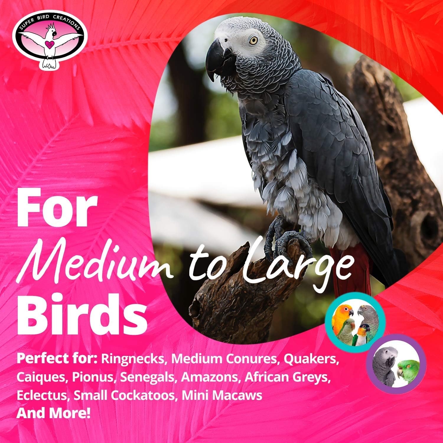 - Suitable for Medium to Large Birds: Perfect for Ringnecks, Medium Conures, Quakers, Caiques, Pionus, Senegals, Amazons, African Greys, Eclectus, Small Cockatoos, Mini Macaws, and similarly sized pet birds.