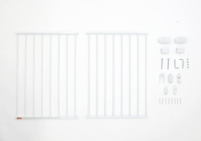 The Regale Top of Stair Baby Gate is a sturdy and convenient gate designed to protect your mobile child from the dangers of stairs. With its all-steel construction, this gate boasts durability and strength, making it an essential tool in childproofing your home. The gate is adjustable to accommodate stair openings between 24″-40.5″ and features a simple rotating latch that allows for easy passage.